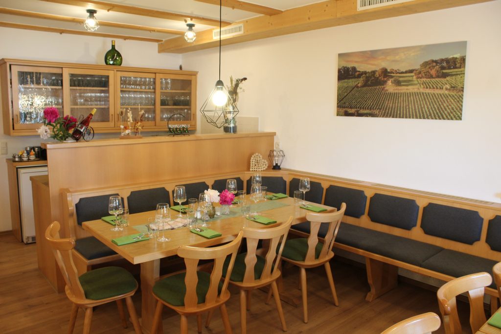 Als Selbstvermarkter kommt bei unserem Familienbetrieb von der Beere bis zum fertigen Wein alles aus einer Hand. Die gemütliche Gaststube im Herzen von Unterhaid gelegen, bietet Platz für 43 Personen. Hier treffen edle handverlesene Weine, auf traditionell fränkische Speisen aus der Region. Von fruchtig bis trocken ist garantiert für jeden etwas dabei.
